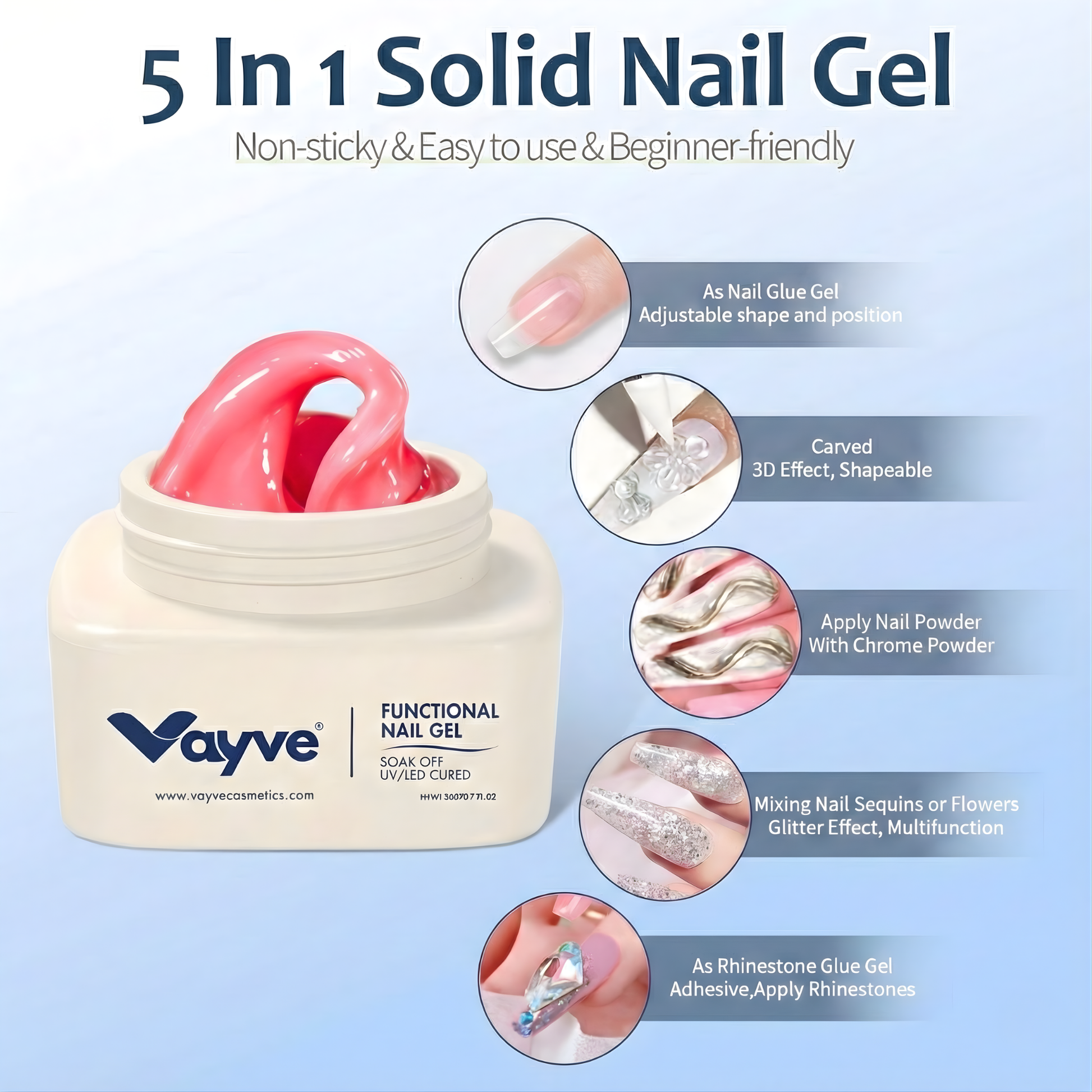 Vayve Solid Nail Extension Combo Kit | Solid Builder Gel + Poly Nail Tips Forms + Nail Filer
